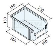 Box stohovací s háčky pro lištu na stěnu. Výrobce: PROSPERPLAST.